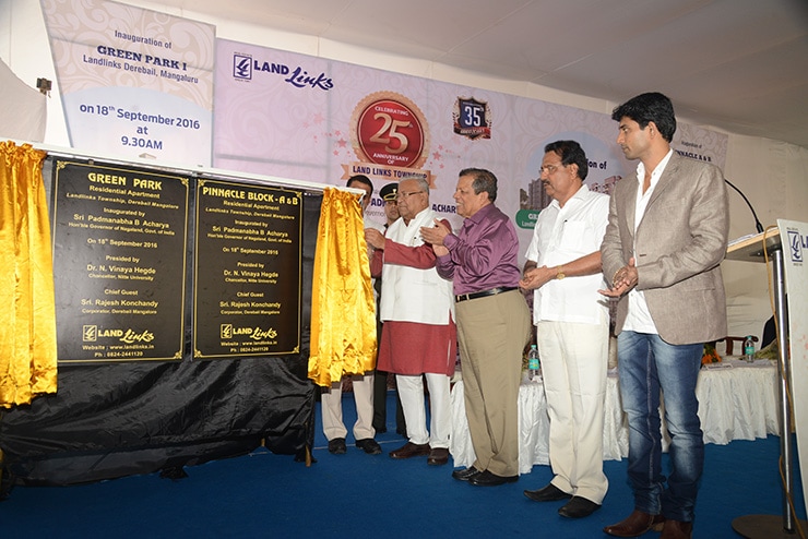 Land Links Township is celebrating its 25th anniversary this year. From humble beginnings in 1981, it has grown to become one of the most vibrant and desirable residential communities in the area. Today, Land Links is proud to inaugurate its newest apartment complexes Green Park I & Pinnacle A & B. Chief Guest, Sri Padmanabha B Acharya, Governor, Manipur, Nagaland, Arunachal Pradesh and Tripura inaugurated the apartment, Sri Rajesh Konchady and Dr. N Vinay Hegde, Chancellor, Nitte deemed to be University were also present.